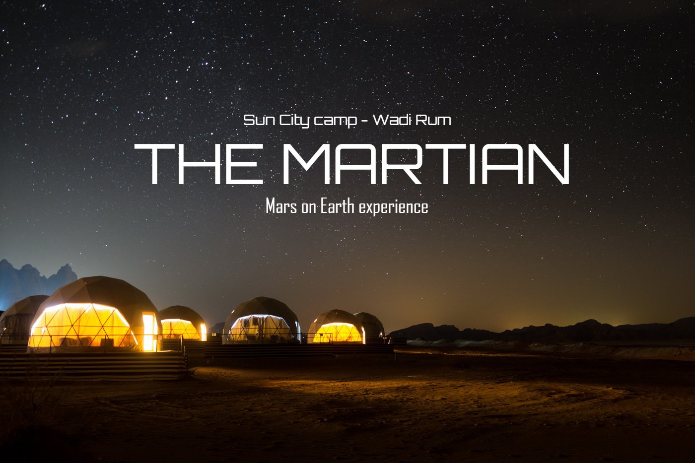 สถานที่นี้คือ Sun city camp ครับ มีที่พักในรูปแบบ Dome ที่เรียกเก๋ๆว่า The Martian ที่เอาชื่อมาจากภาพยนตร์เรื่อง Martian นั่นเอง หนังที่พระเอกของเรื่องไปติดอยู่ดาวอังคาร